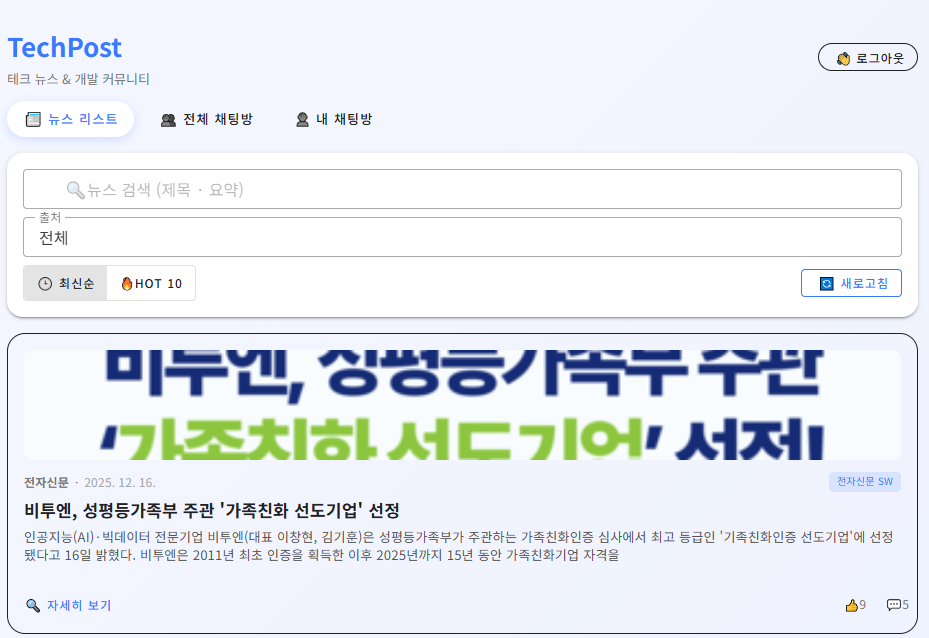 “테크 뉴스 및 개발 블로그 통합 크롤링 기반 커뮤니티 서비스”
