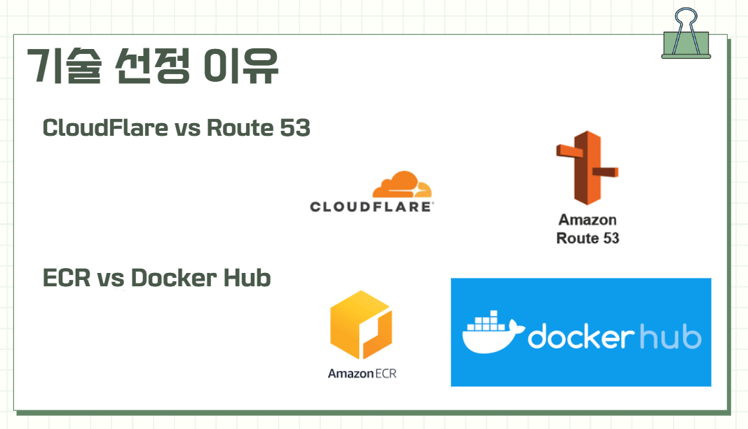 반면 AWS에서 유사한 수준의 기능을 구성하려면, Route 53 자체가 아니라 CloudFront와 WAF 등 여러 서비스를 조합해야 하고, 이 과정에서 추가 비용과 설정/운영 부담이 커질 수 있다고 판단했습니다. 그래서 저희 프로젝트 상황에서는 Cloudflare가 비용/구성/운영 측면에서 더 효율적이라 선택했습니다.